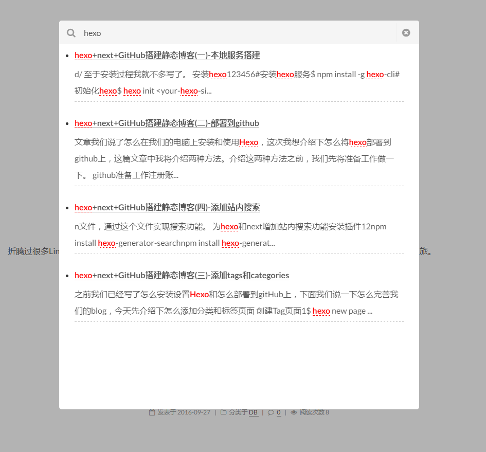 hexo+next+GitHub搭建静态博客(四)-添加站内搜索